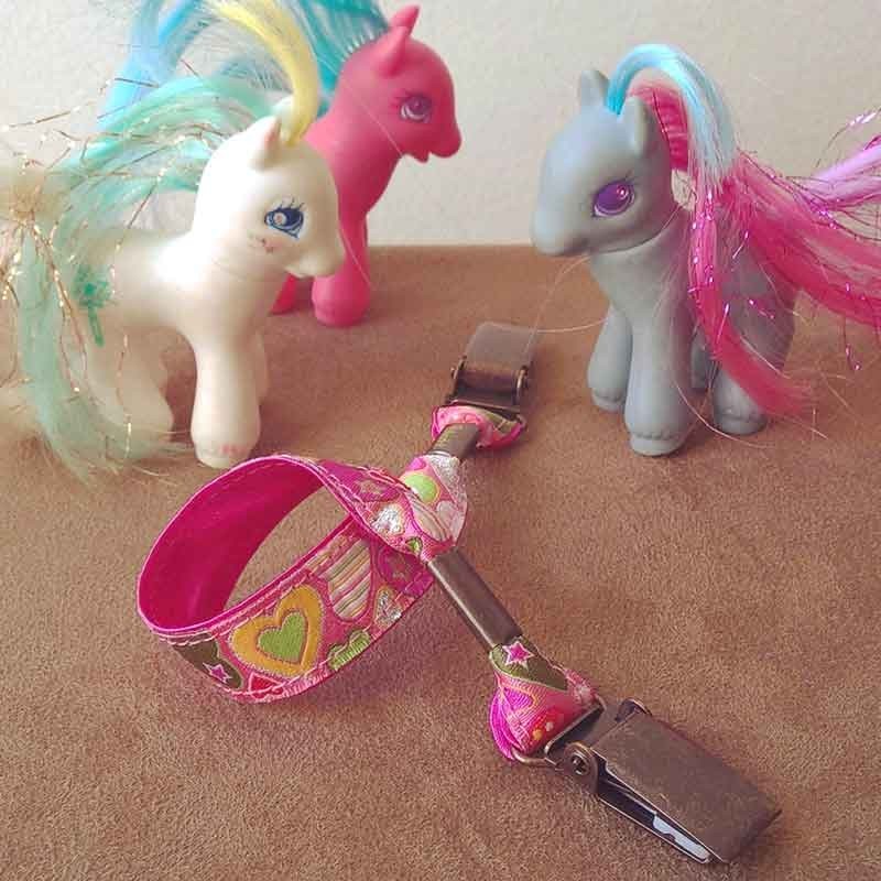 Attache-doudou / Attache-serviette avec des coeurs qui brillent !