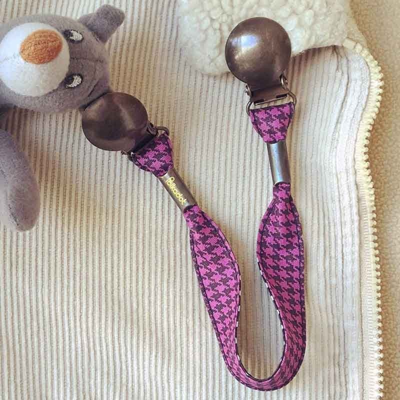Attache-doudou / Attache-serviette en coton Pied de poule violet.