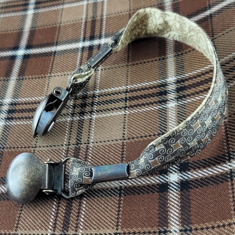 Attache-doudou / Attache-serviette avec une lanière en coton marron joliment Rétro.
