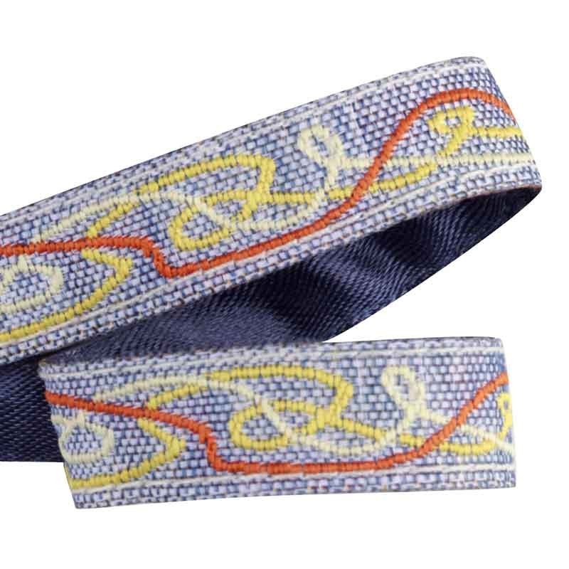 Attache-doudou / Attache-serviette avec un ruban jacquard tissé d'un motif géométrique gris.