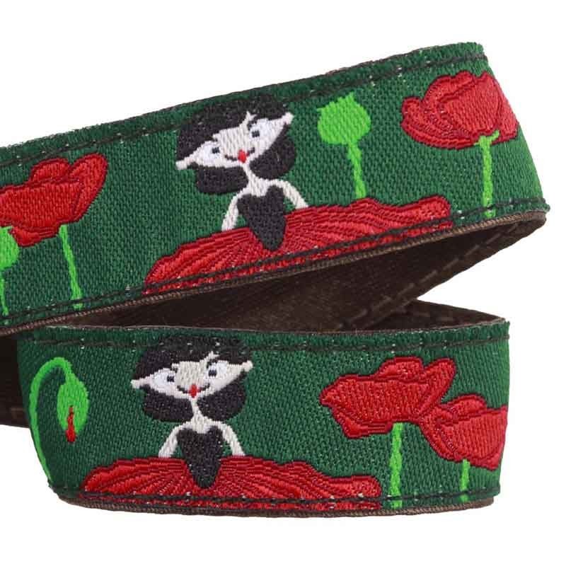 Attache-tétine avec un ruban jacquard tissé de coquelicots.