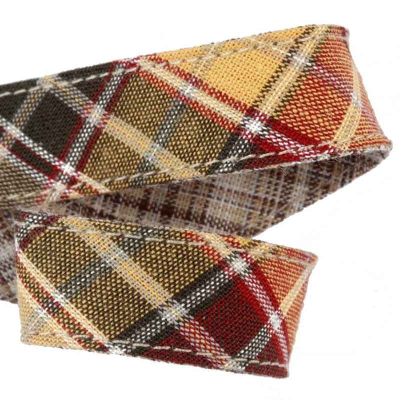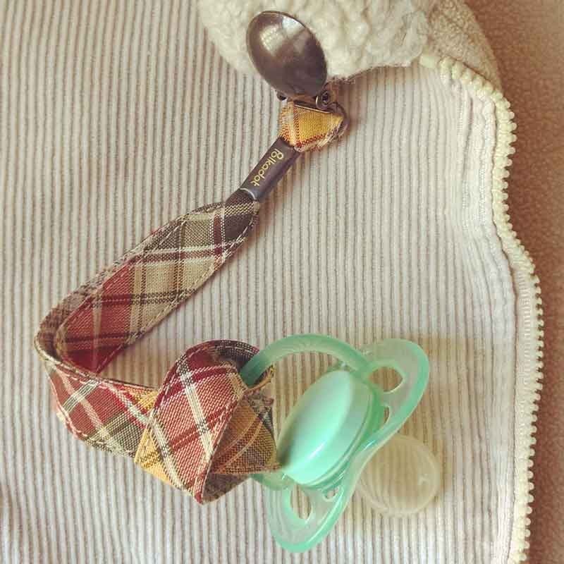 Attache-tétine avec une dragonne en coton motif écossais beige.