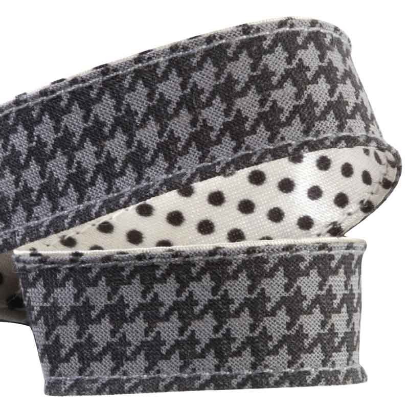 Attache-tétine avec une dragonne en coton pied de poule gris doublée d'un satin à pois.