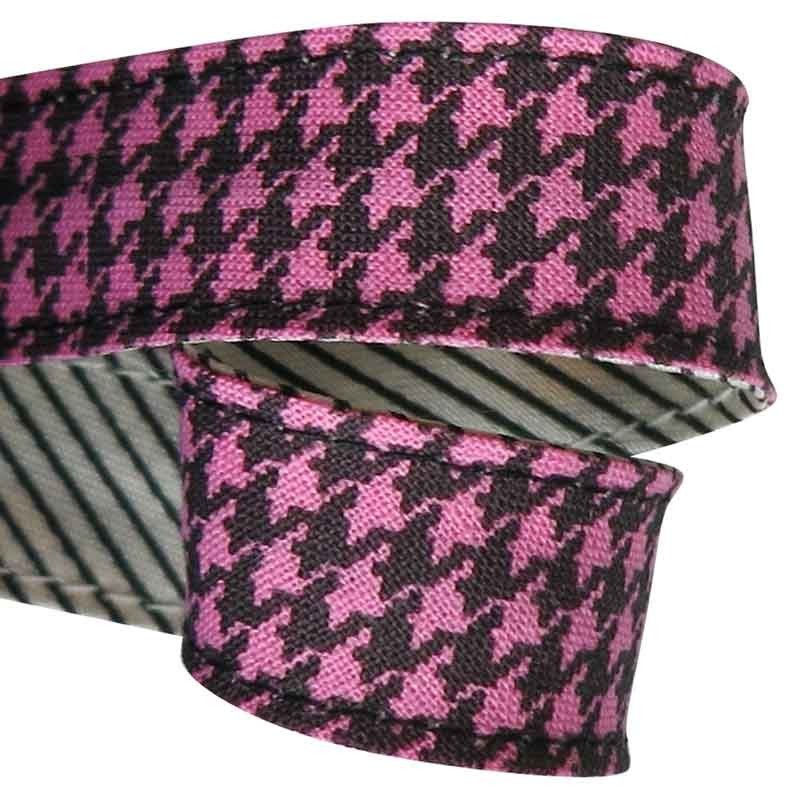Attache-tétine en coton Pied de poule rose.