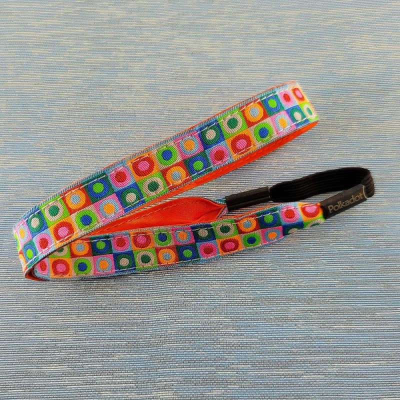 Bandeau cheveux pour adulte avec un ruban multicolore tissé de pois fluo.