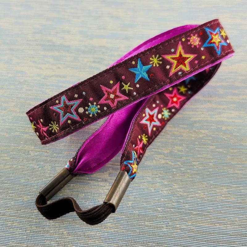 Bandeau cheveux pour enfant avec un ruban tissé d'étoiles qui brillent doublé de satin.