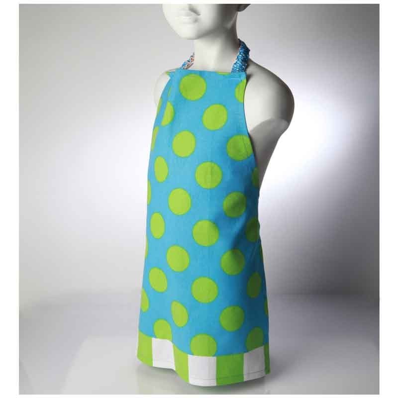Tablier pour enfant à Pois vert et bleu rigolo avec cordon élastique.