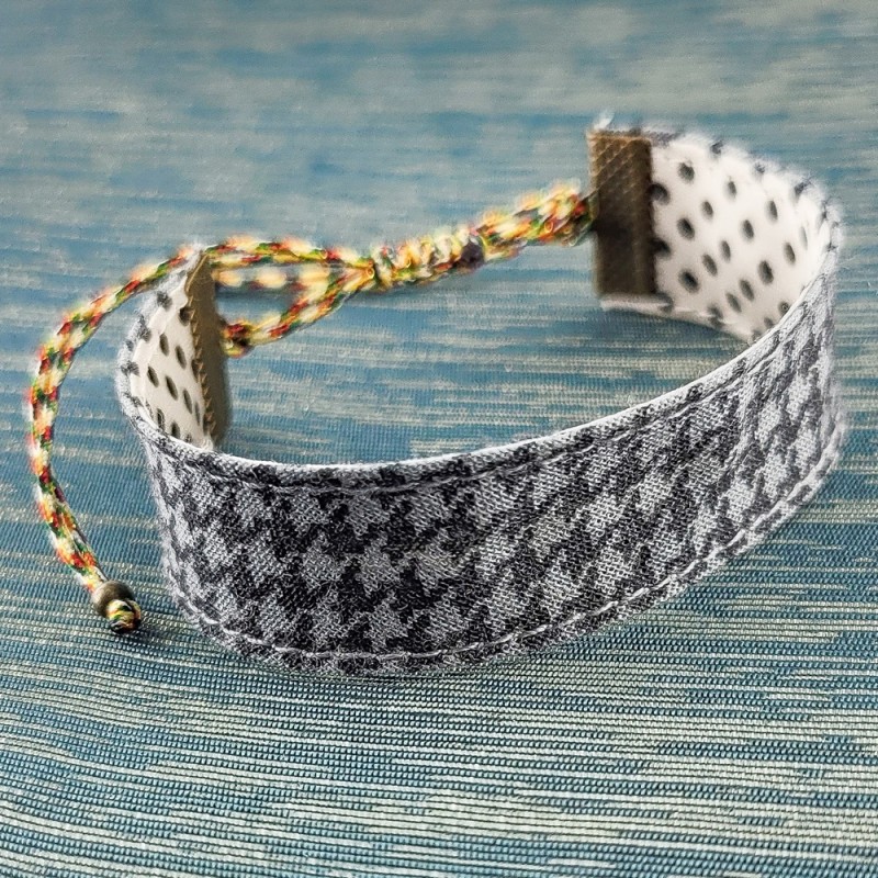 Bracelet RÉVERSIBLE en coton Pied de poule gris.