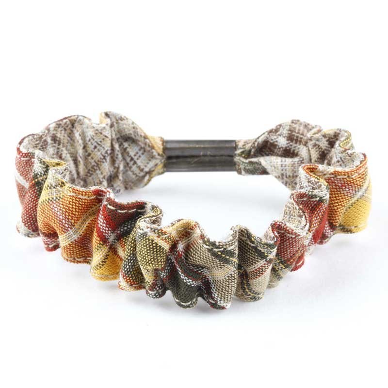 Chouchou cheveux en coton motif Écossais beige.