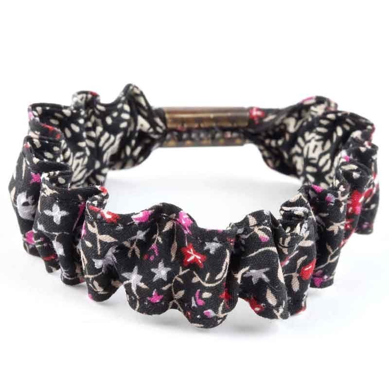 Chouchou cheveux avec un ruban noir en coton imprimé de fleurs d'inspiration Liberty.