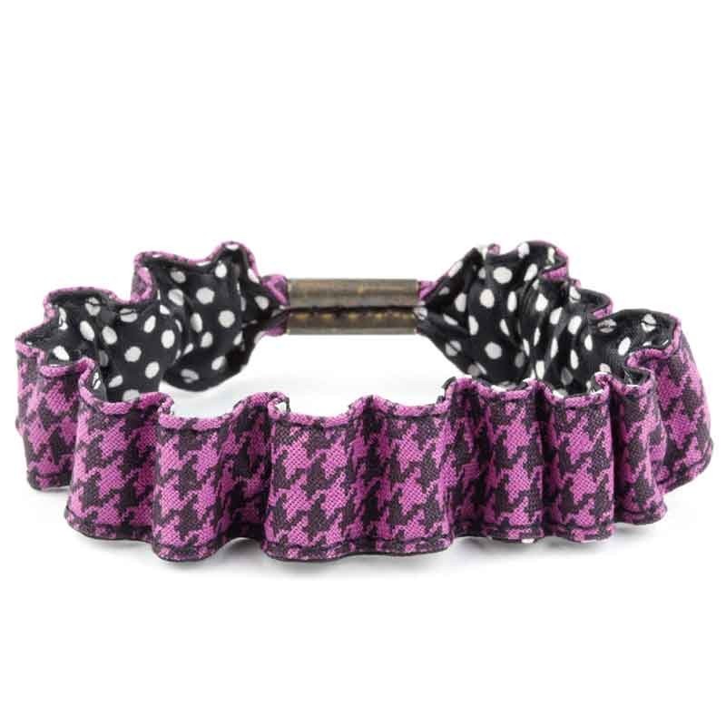 Chouchou cheveux avec un ruban en coton pied de poule violet doublé d'un satin à pois.