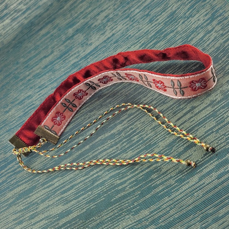 Collier ras du cou confectionné avec un joli ruban rétro tissé de fleurs.