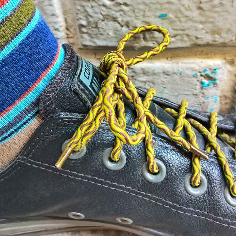 Lacets chaussures élastiques de couleurs marron et kaki.