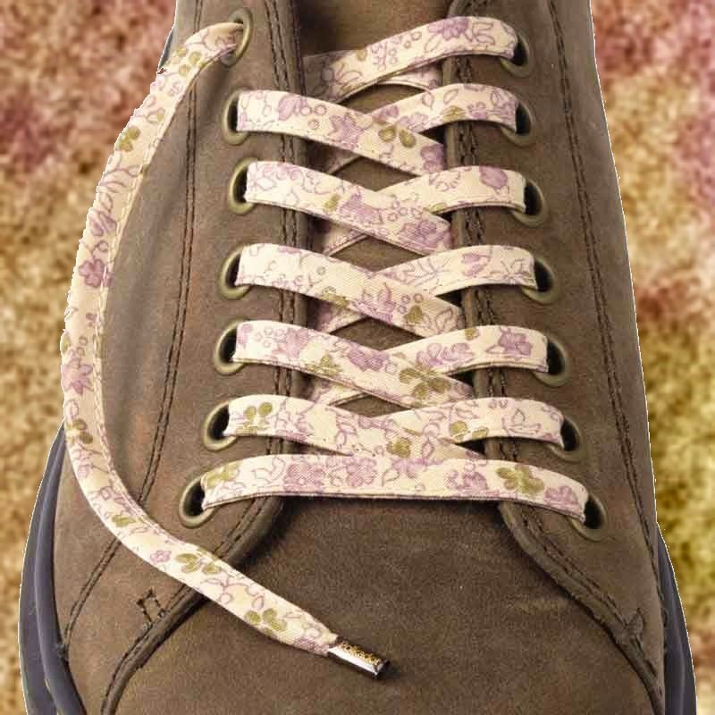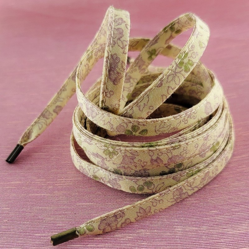 Lacets chaussures fantaisie en coton beige imprimé de fleurs d'inspiration Liberty.