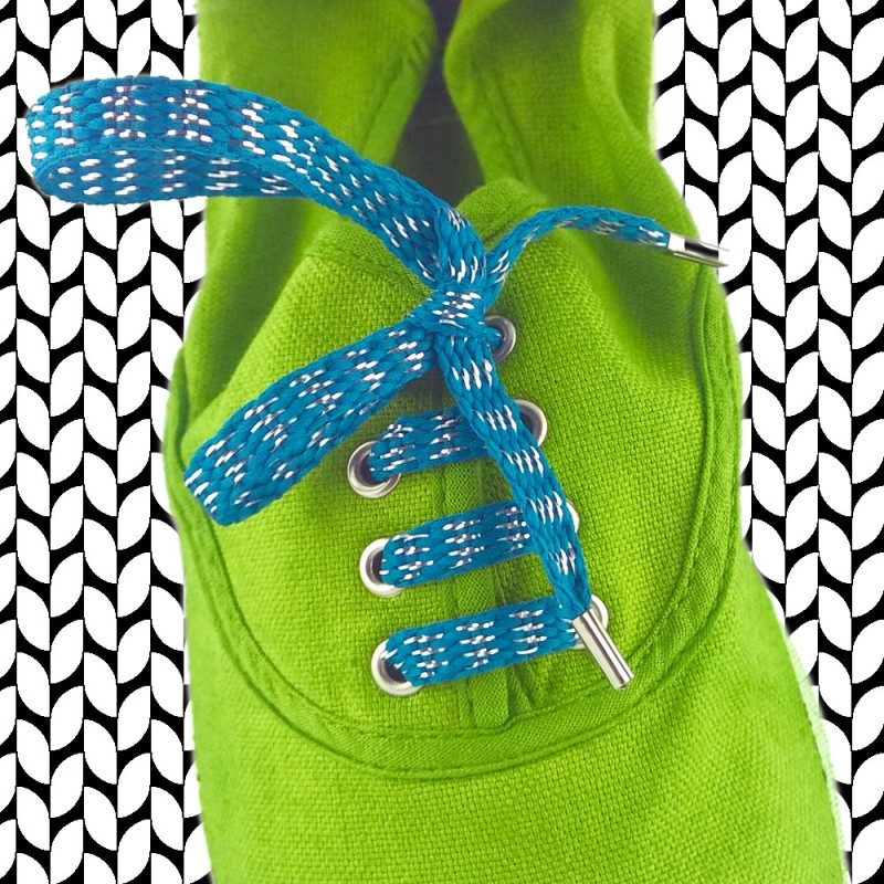 Lacets chaussures fantaisie à rayures bleu canard et lurex argent.